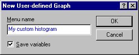 Enter here the name (up to 40 characters) that will be used to identify the user-defined graph on the Graphs menu. For example, suppose you called the new graph My customhistogram.