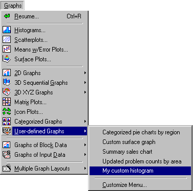 Use the Customize Menu option to edit the list of user-defined graphs that you want to be available here.
