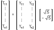 Now, suppose that scores for the 2 algebra tests (i.e., values on the Y1 and Y2 variables at Time 1 and Time 2, respectively) are transformed into scores on a new composite variable (i.e., values on the T1), using the linear transformation