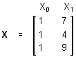 Simple regression designs involve a single continuous predictor variable. If there were 3 cases with values on a predictor variable P of, say, 7, 4, and 9, and the design is for the first-order effect of P, the X matrix would be