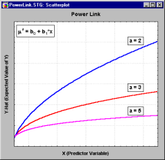 Various link functions (see McCullagh and Nelder, 1989) can be chosen, depending on the assumed distribution of the y variable values: