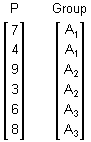 then the sigma-restricted model X matrix for the design that includes the separate first-order effects of P and A would be