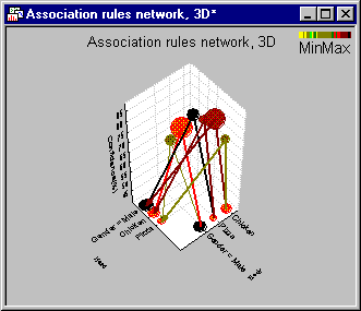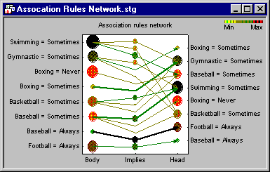 where strong associations are highlighted by thick lines connecting the respective items. See also, the Introductory Overview on Association Rules.