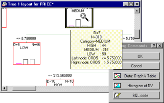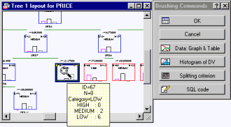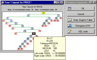 Options are also provided to review trees interactively, either using Statistica Graphics brushing tools or by placing large tree graphs into scrollable graphics windows where large graphs can be inspected behind a smaller (scrollable) window.