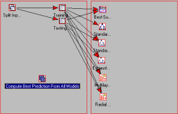 After applying these cutting-edge techniques for modeling linear, nonlinear, or even chaotic relationships, you are ready for deployment. Simply connect the data source for the new data (new customers) to the Compute Best Prediction From All Models node, and the program will automatically apply the fully trained models to derive the best prediction possible.