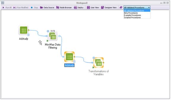 - Options such as Run to node and Run modified nodes make it possible for you to execute only portions of the workspace at a time.
