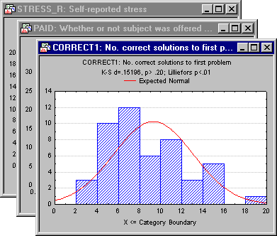 One of the advantages of this way of handling output is that you can easily custom arrange these objects within the Statistica application workspace (suchas to create multiple, easy to identify reference documents to be compared to the new output). However, In order to achieve that effect, you do not need to configure the output ahead of time and generate a large number of (mostly unwanted) separate windows that can clutter the workspace. Instead, individual, specific output objects directed to and stored in the other two channels (workbooks and reports) can easily be dragged out from their respective tree views onto the application workspace as needed.