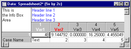 The exact appearance on your installation of Statistica may vary if you have different predefined defaults in effect for spreadsheets.