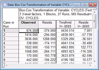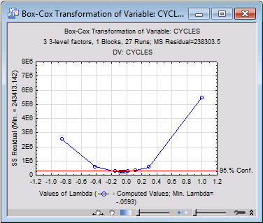 Select Log_Cycl in the Variable drop-down list, select the Box-Cox tab, and click the Box-Cox Transformation button.