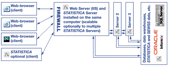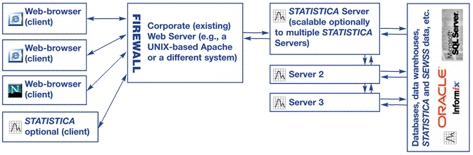 Although the general design uses two computers in a typical configuration, the web server ( a UNIX-based Apache system) and at least one Statistica Server (optionally scalable to multiple Statistica Enterprise Servers):
