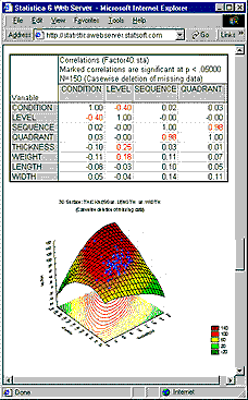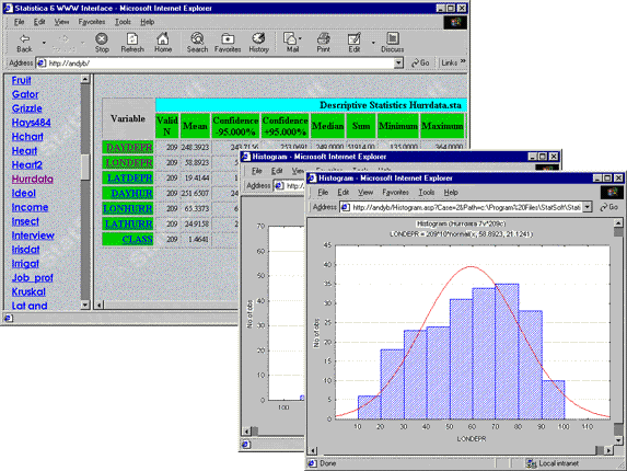 The output from all Statistica products is Web enabled (in a way that some other software manufacturers call - technically incorrectly - a full or complete web-enablement). Specifically, you can automatically direct formatted reports with presentation-quality tables and graphs to Web servers. Users can easily record macros to perform a set of specific analyses and automatically deliver results in a variety of ways. Results can be automatically posted on the Internet or Intranet or e-mailed to specific recipients as HTML reports that can be viewed with a browser. With practically no programming skills users can set macros to run repeatedly - at specific intervals or whenever new data are found in a database. Again, Statistica can automatically post updated results.