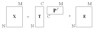 The algorithm extracts one principal component at a time. Each component is calculated from the iterative regression of X onto the x-scores t, such that at each iteration a better loading factor p is found. The value of p is then used to improve the estimate of t.