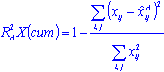 The denominator is the residual sum of squares and the numerator is the total variation in the original pre-processed data set. For a PC model with, say, A components, the cumulative
