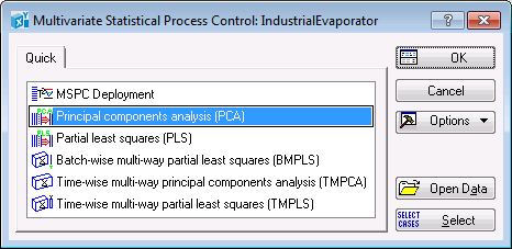 Classic menus. From the Statistics menu, select PLS, PCA Multivariate/Batch SPC to display the Multivariate Statistical Process Control dialog box.