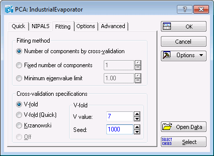 Although the seed for the cross-validation random number generator is determined by time on your computer, for this example, set its value to 1000 via the Seed option on the Fitting tab. This ensures that you reproduce the same results shown in the spreadsheets and graphs of this step-by-step example.