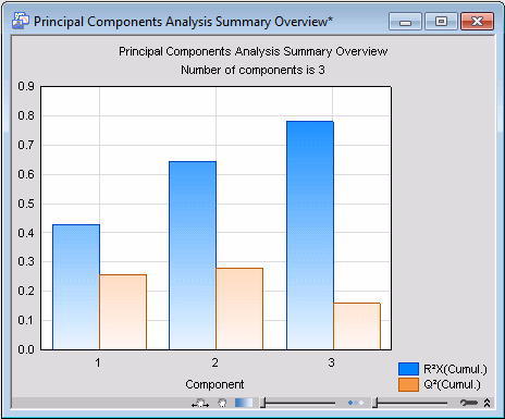 In this particular example, we used the cross-validation method for determining the optimal number of principal components (i.e., model complexity), which happens to be 3 in this case. This means that, on this occasion, the cross-validation algorithm found a PC model with 3 components to best represent the data set. See PCA and PLS Technical Notes for more details on cross-validation.