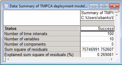 Next, click the OK button in the TMPCA dialog box. This will initiate the NIPALS algorithm and, when complete, the TMPCA Results dialog box will be displayed.