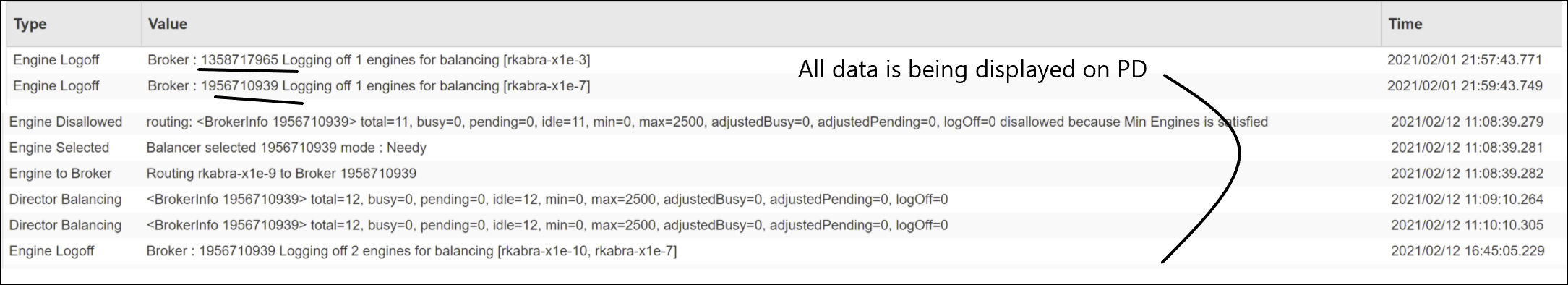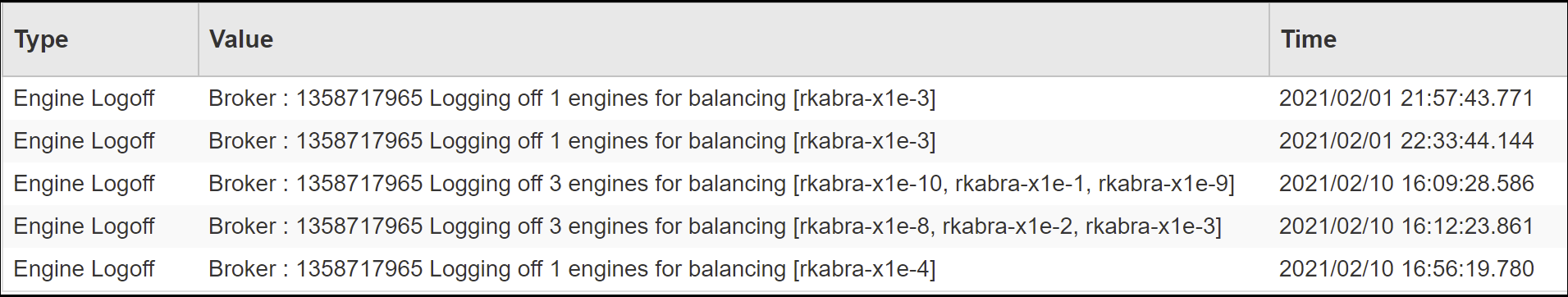 The GridServer Manager can use the engine_ins table, which contains details of the Engine balancing process.