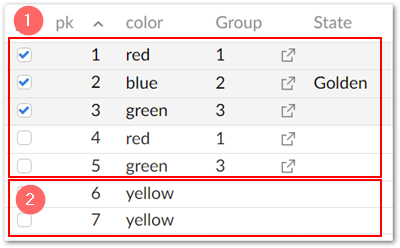 2) | Even though records 6 and 7 have matching values of yellow, the add-on did not group them since they were unselected and not compared against each other. |
