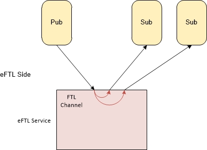 If an eFTL application both publishes and subscribes, it does not receive messages from itself through the FTL channel.