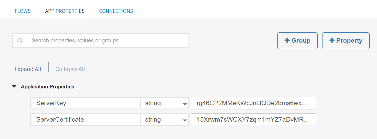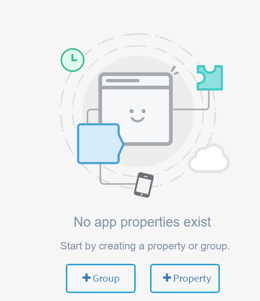 The App Properties dialog opens.If you already have existing properties, they are displayed. Click +Property to add another property.