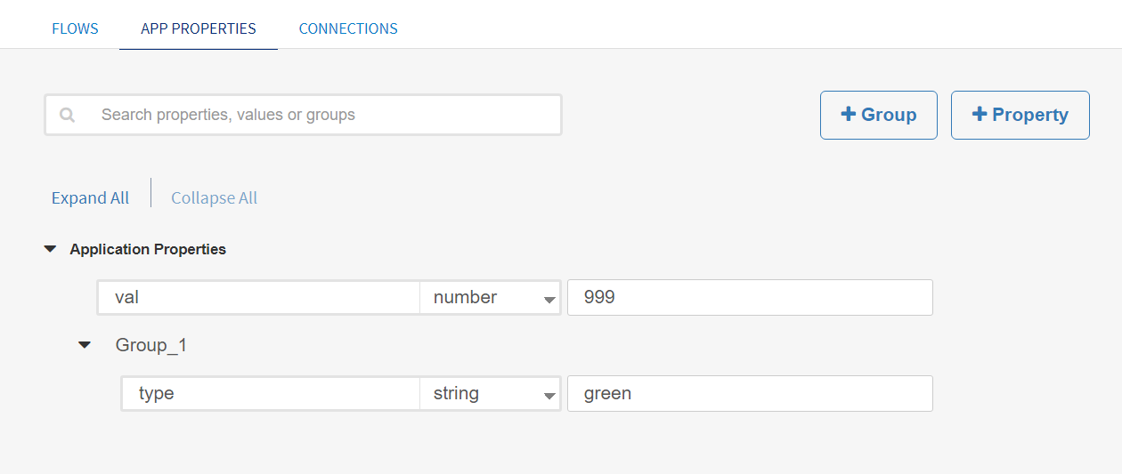 Note: The standalone properties (properties that are not in a group) or the properties within the same group must have unique names.