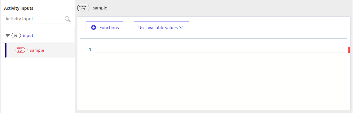 You can map values of the Enum data type to the Activity Inputs element directly by selecting the values from the Use available values dropdown.