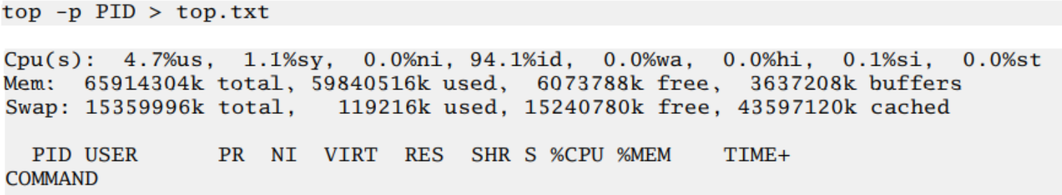 top command works on Linux platforms only.The top command is used for memory and CPU monitoring.