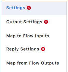 Activity and Trigger configuration tab level reporting - When you click on an activity or a trigger in the flow, its configuration page opens, displaying the various tabs. Click a tab to see the errors or warnings in the configuration within that tab.