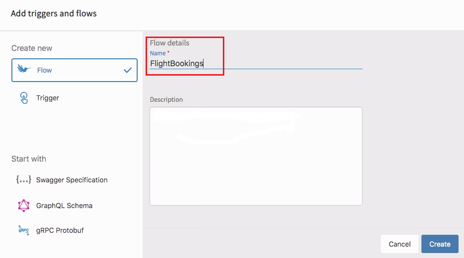 Every app must have at least one flow and, in most cases, a trigger that initiates the flow. Create a new flow with the REST trigger. The ReceiveHTTPMessage REST trigger listens for an incoming REST request that contains the details of a passenger who wants to book a flight. Specify the fields for the request in the REST trigger in JSON schema format.