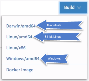 - Select your target platform from the Build drop-down list. Select Windows/amd64 on Windows, Darwin/amd64 on Macintosh or Linux/amd64 or Linux/86 on Linux from the list.