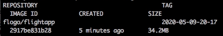 Note: Even though the app name contains camelCase, the name is converted to all lowercase letters when the Docker image is named. For example, "FlightApp" translates to "flightapp".