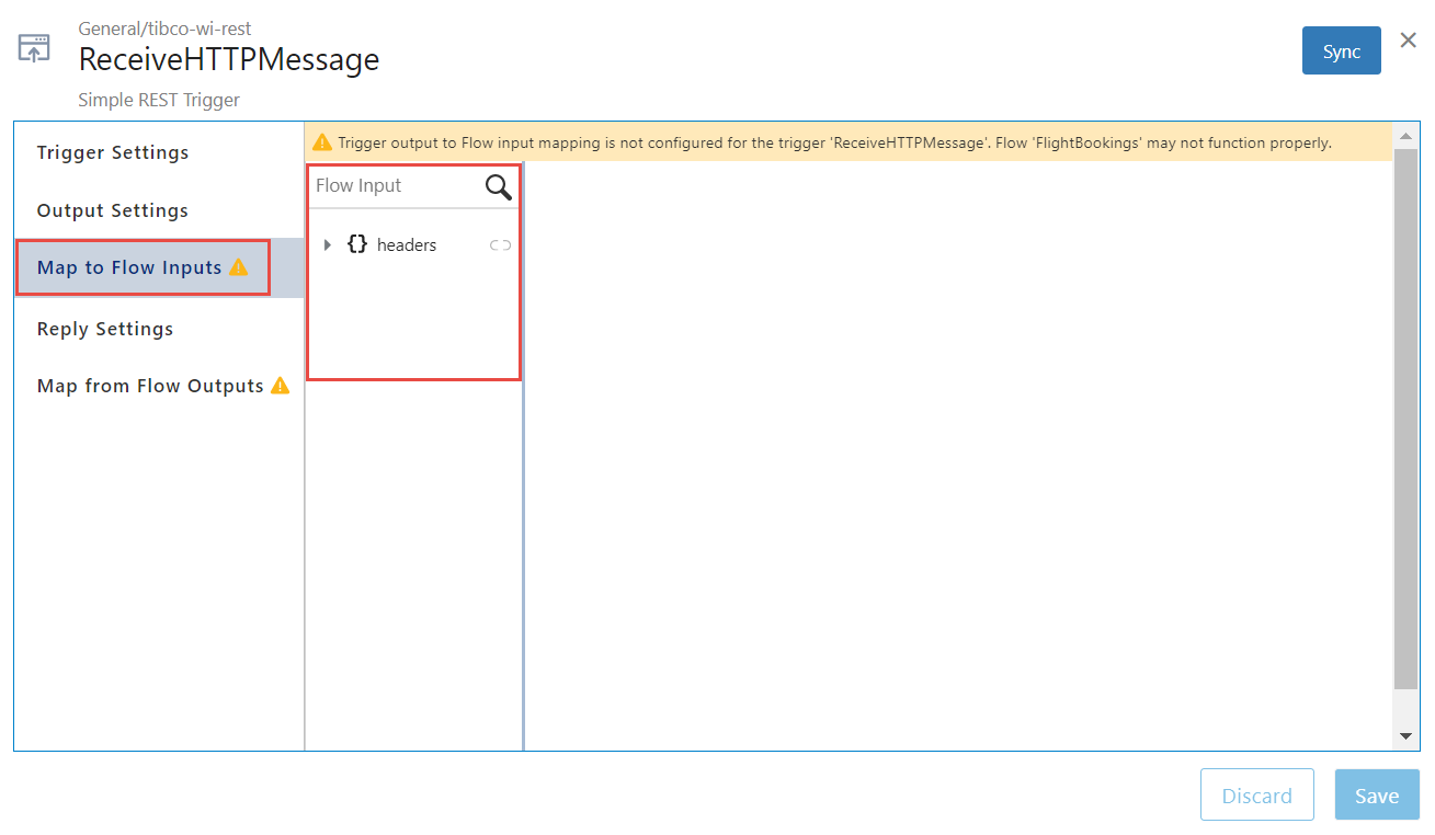 The box should now display $trigger.headers. This indicates that you have successfully mapped the trigger output headers to the flow input header.