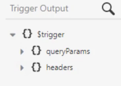 To map the flow input queryParams with the trigger output queryParams, in the Trigger Output section, click $trigger and then click queryParams.