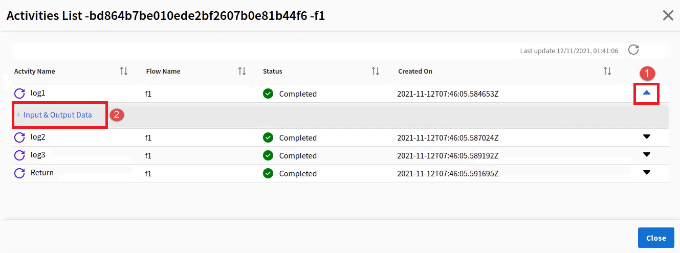 - On the View Details page, click the expand icon and then click Input & Output Data.