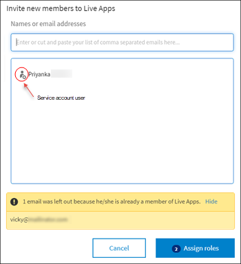 Click Assign roles to assign roles to the users.