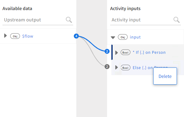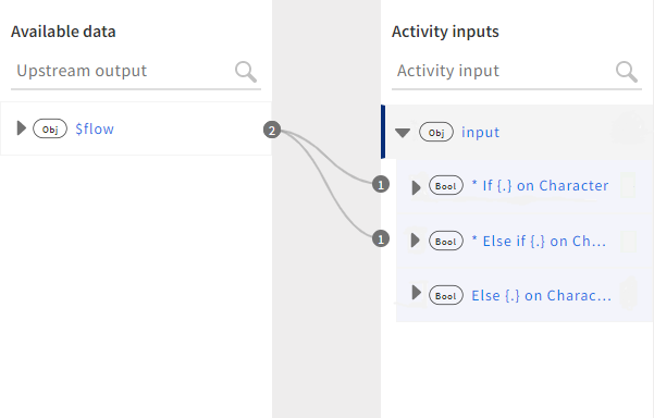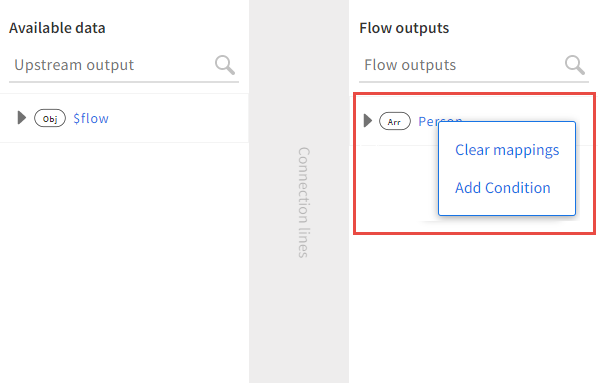 You can add conditions in your data mappings to get outputs based on those conditions. You can add conditions to primitive objects, nested arrays, nested objects, and any other type of input. if/else conditions are available in activities and triggers in the main flow and error handler.