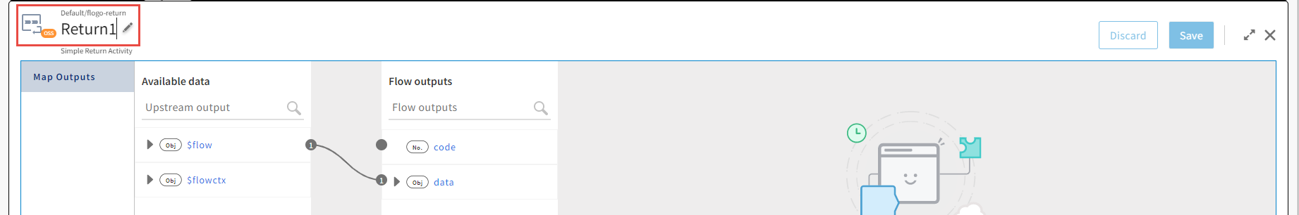 - Duplicate the Return activity from the first branch instead of manually adding another Return activity. You can copy the activity by clicking