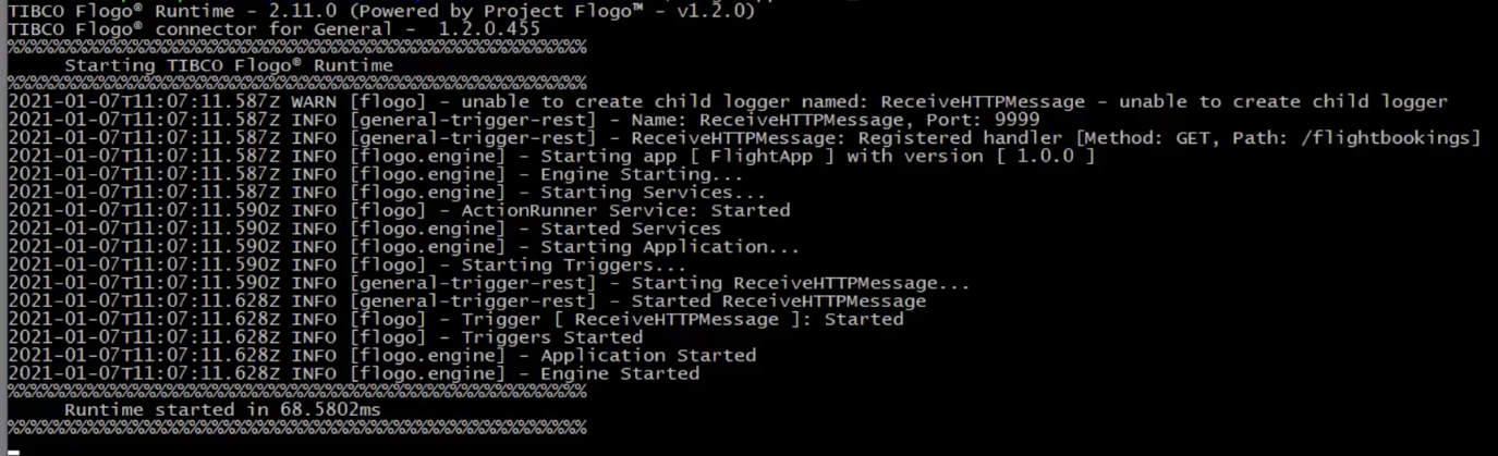 Your app is now ready to be built. You can build a Flogo app using a s an executable file.
