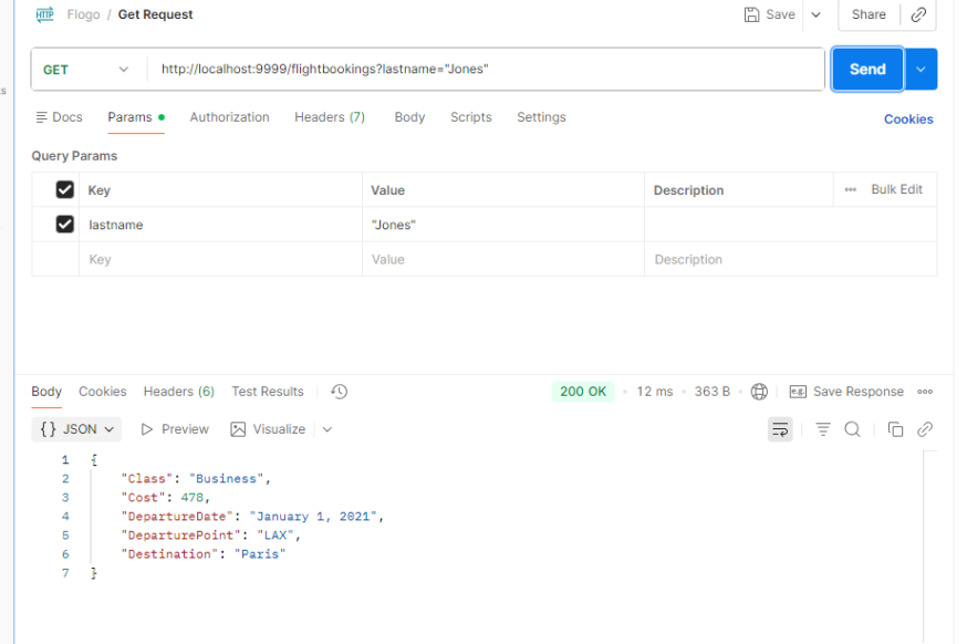- Add the first branch to check whether the passenger’s last name is Jones to return the information of a flight booked in