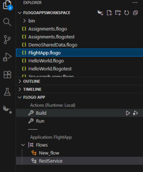 Navigate to Explorer View > FLOGO APP and click the dropdown icon.