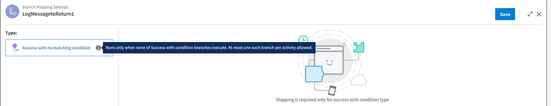 In the Branch Mapping Settings dialog that opens, select the Success with condition branch condition.