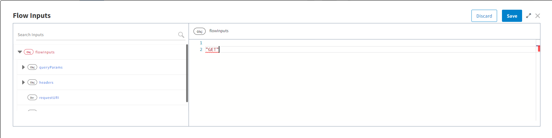 - On the Unit Test page, under the Main Flow tab, click Flow Input.