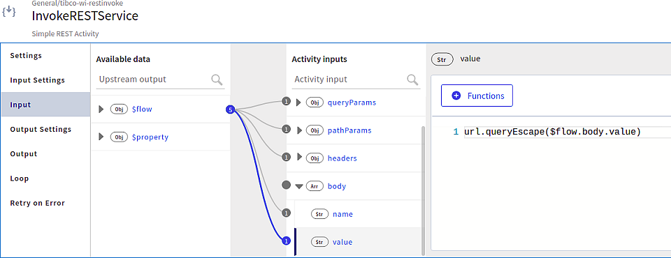 http://<host-url>:port/{path}Here, {path} is the parameter that can be modified. You can map this parameter in the Input section and assign values to it from the previous activities or the app properties. |