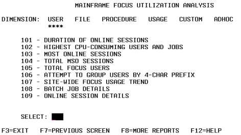 FOCLOG comes packaged with a Master File that gives FOCUS access to the log file. It also comes with a menu-driven interface with usage reports that you can start running as soon as you decide you have collected enough usage data.