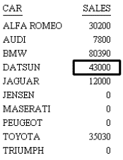 TABLE FILE CAR PRINT SALES SEATS ACROSS COUNTRY ON TABLE SET SQUEEZE ON ON TABLE SET PAGE-NUM OFF ON TABLE HOLD FORMAT HTML ON TABLE SET STYLE * TYPE=REPORT, ORIENTATION=LANDSCAPE,FONT=COURIER,$ TYPE=DATA,ACROSSCOLUMN=SEATS,WHEN=SEATS EQ 4,STYLE=BOLD, COLOR=BLUE,$ TYPE=DATA,ACROSSCOLUMN=SEATS,WHEN=SEATS GT 4,SIZE=12, COLOR=AQUA,$ TYPE=DATA,ACROSSCOLUMN=SEATS,WHEN=SEATS LT 4,STYLE=ITALIC, COLOR=RED,$ ENDSTYLE END