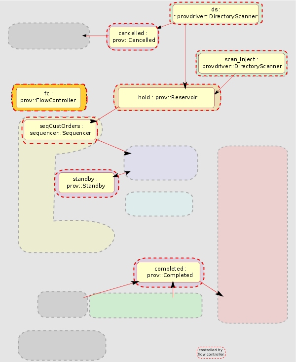 Figure 28. Flow Control ModulesReservoirs automatically checkpoint the incoming service orders (see also Checkpointing Service Orders). Therefore, it is never necessary to place a checkpoint module immediately before or after a Reservoir.