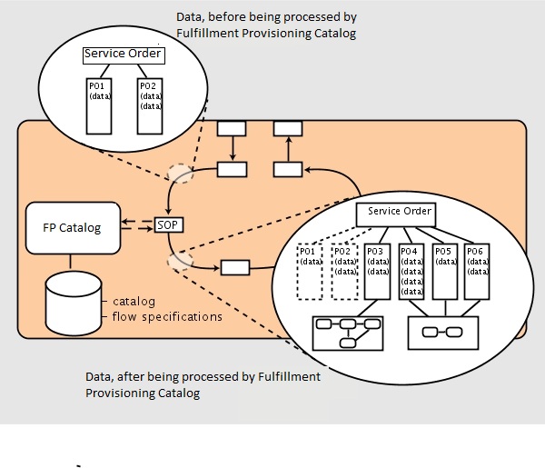 • Attaching product order flows: Assigns an appropriate product order flow specification to each product order. In addition, the Fulfillment Provisioning Catalog specifies and sequences the tasks to execute the order.
