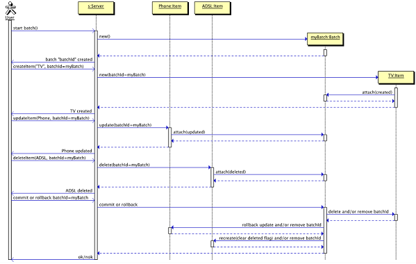 The Batch functionality on server side is the ability to group the commands under a common batch ID. The group of commands can be either committed as a whole or rolled back as a whole.