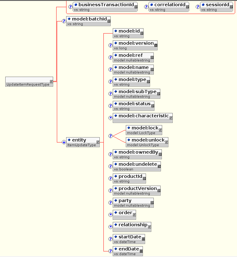 | entity/relationship | N/A | Optional | This is the relationship for the item. See the " Update Relationship" section in Update Sub Elements for more details on the sub elements of this element. |